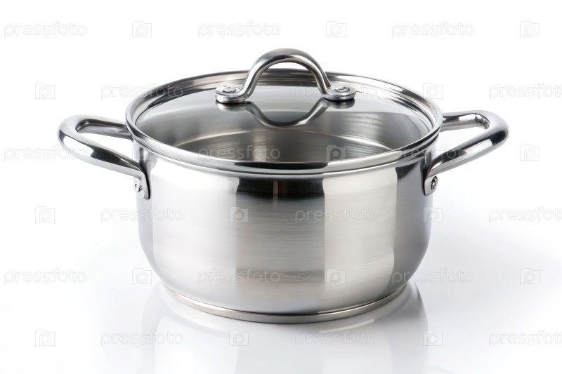 Горшок из нержавеющей стали с крышкой на белом фоне для кухонного использования. генеративный ИИ