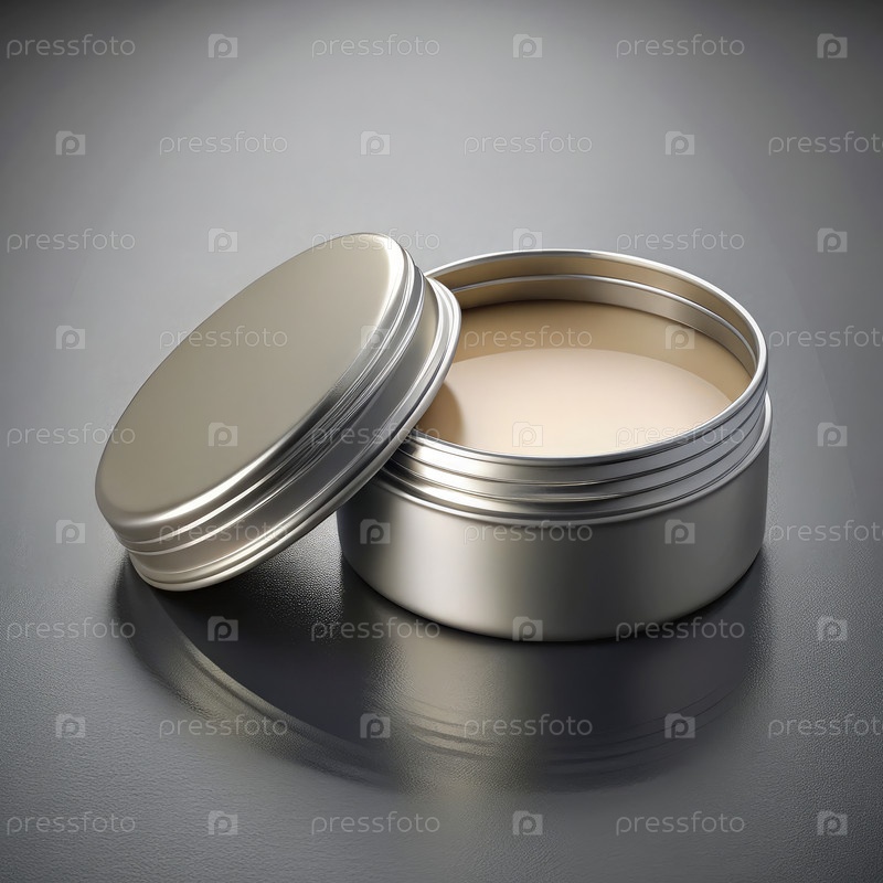 Элегантный макет оловянной помады на тонком сером фоне, демонстрирующий дизайн продукта