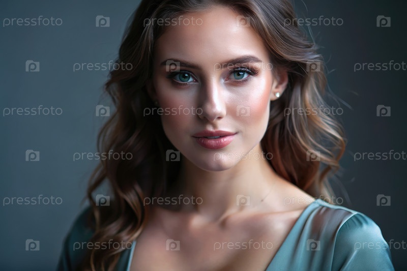 Высококачественный портрет женщины в мягком синем платье с естественным освещением