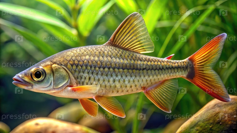 Alburnus alburnus, грациозно плавающий в пресноводных средах обитания с водными растениями