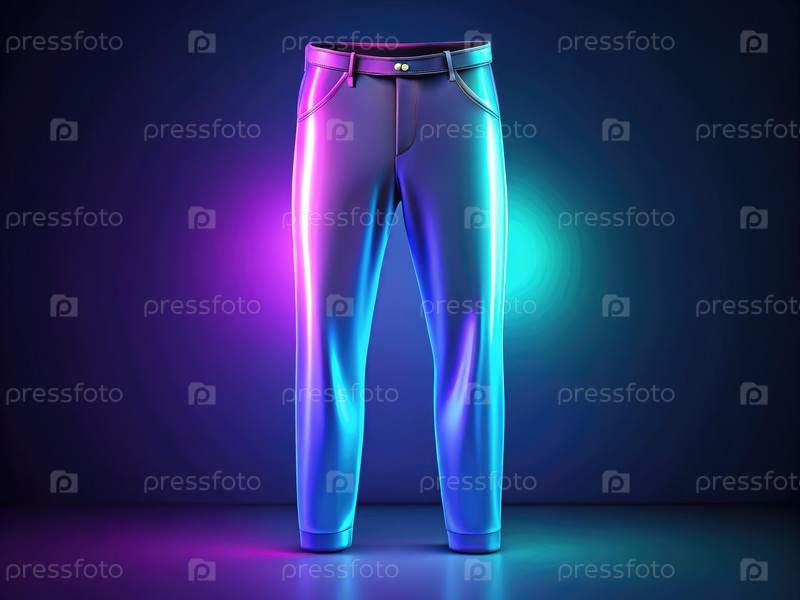 Стильные голубые и фиолетовые неонные брюки в современной, изолированной обстановке