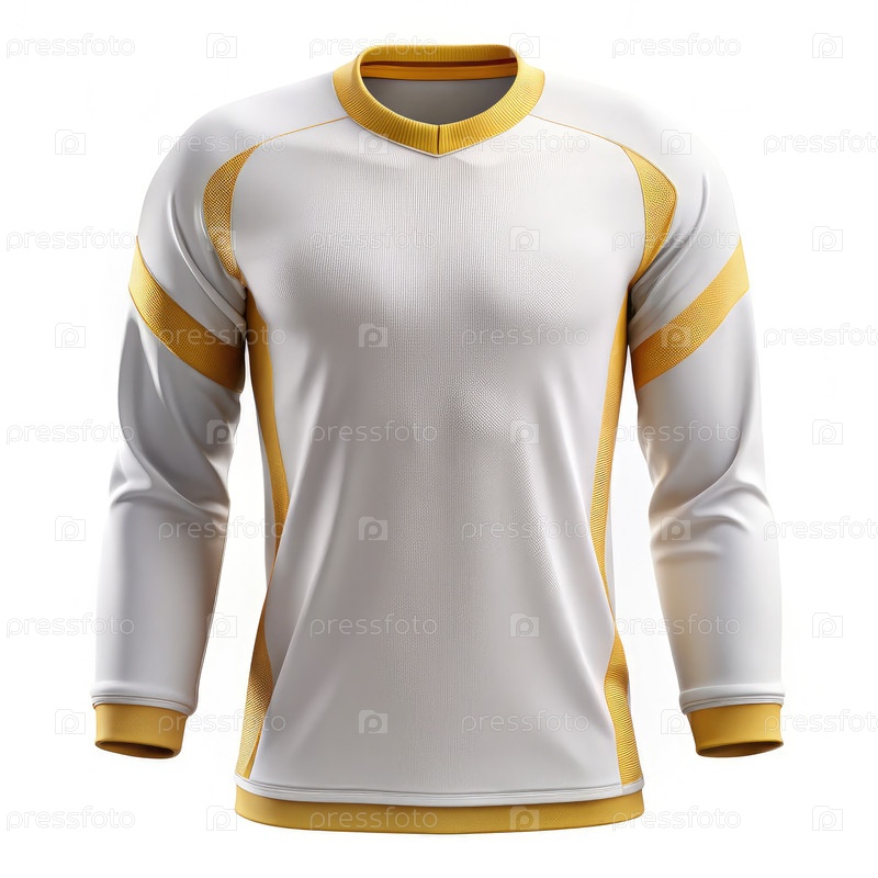 Белая футбольная футболка с желтыми акцентами, предназначенная для демонстрации спортивной одежды