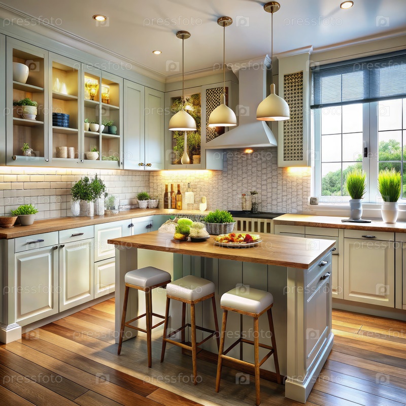 Стильный дизайн интерьера кухни с естественным светом и элегантными элементами декора