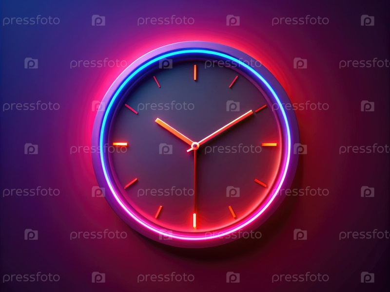 Живые красно-фиолетовые неоновые настенные часы, демонстрирующие современный дизайн и смелые цвета