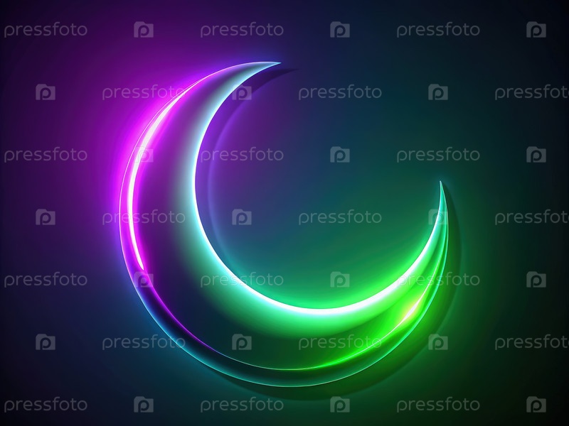 Дизайн полумесяца в ярком неоновом зеленом и фиолетовом цветах на темном фоне