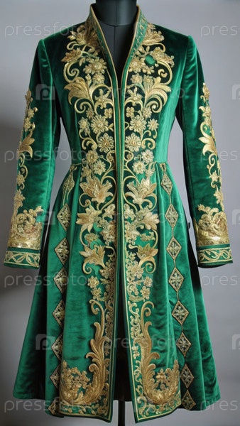 Роскошное бархатное пальто со сложной золотой вышивкой на дисплее