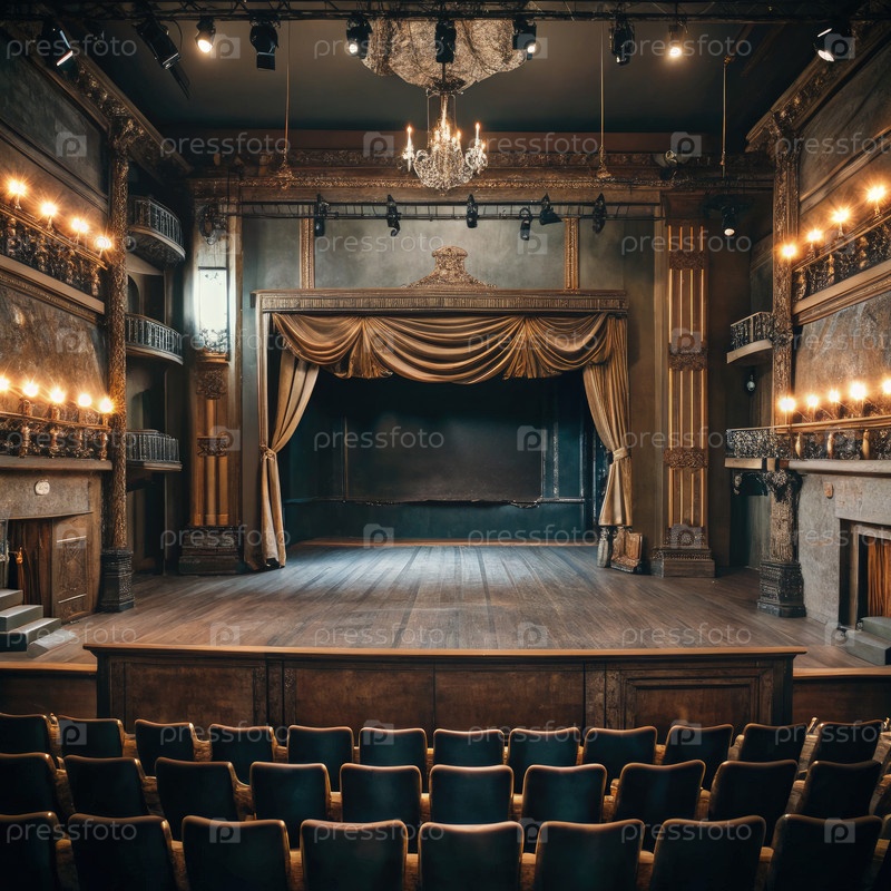 Элегантная театральная сцена с украшенным декором и теплым освещением, готовая к исполнению