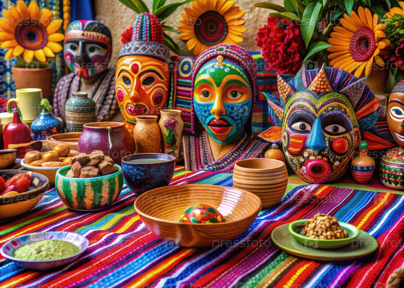 Живые традиционные текстили и красочная керамика выставлены в праздничной обстановке