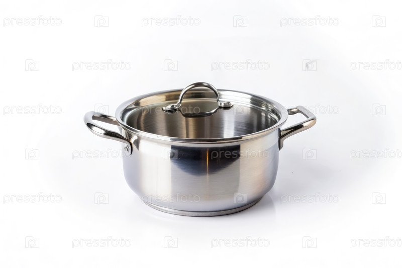 Горшок из нержавеющей стали, расположенный на белом фоне со стандартной шкалой
