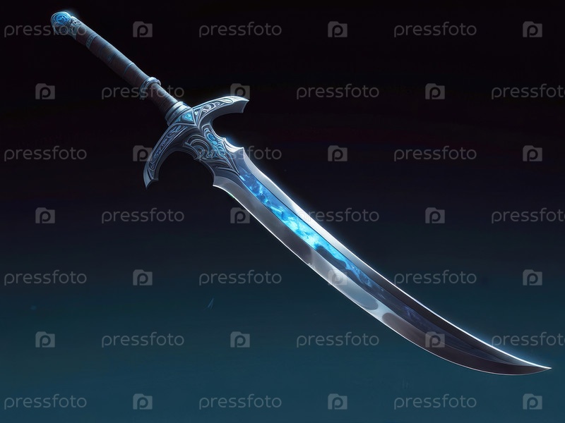 Блестящий длинный меч с сложным дизайном, отображаемый на темном фоне