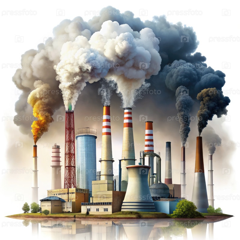 Элементы загрязнения от промышленных дымоходов на белом фоне