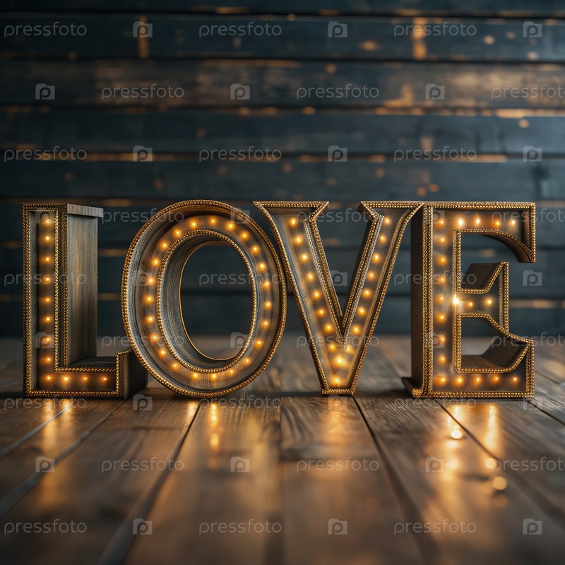 Знак любви, освещенный на деревянном полу на рустическом фоне