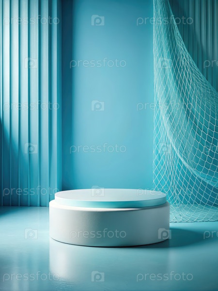 Элегантный дисплей одного продукта на закругленном подиуме на синем фоне