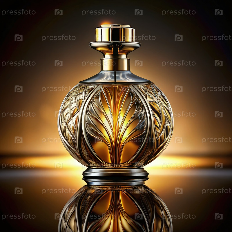 Скульптурная бутылка роскошного парфюма, выставленная в студии с драматическим освещением
