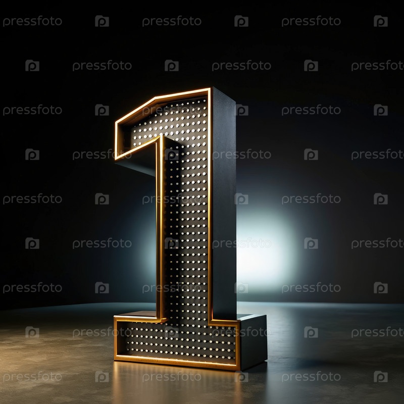 Ярко освещенный декоративный номер один отображается в современной обстановке студии