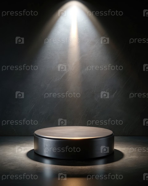 Прожектор освещает круглую платформу в темной обстановке