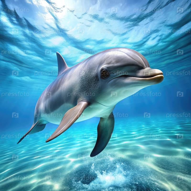 Дельфин, грациозно плавающий в чистых океанических водах при ярком дневном свете