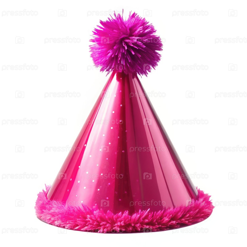 Ярко-розовый вырезок партийной шляпы на белом фоне идеально подходит для празднований