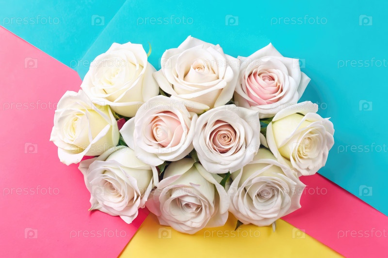 Элегантное расположение белых роз на мягком серо-розовом фоне
