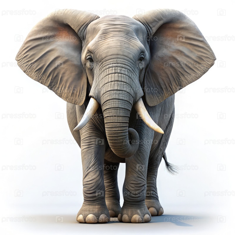 Реалистичная иллюстрация слона на белом фоне с четкими деталями и особенностями