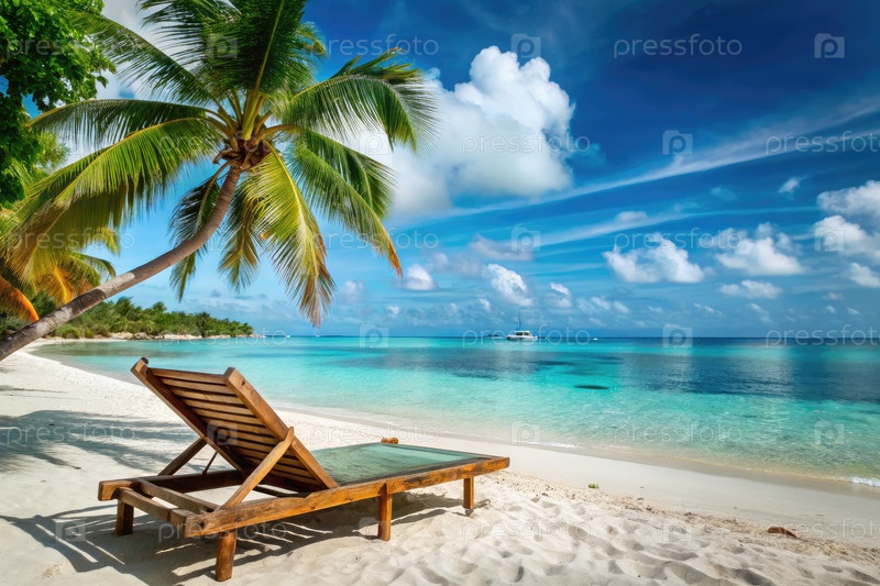 Расслабьтесь на пляжном кресле под пальмами в тропическом раю