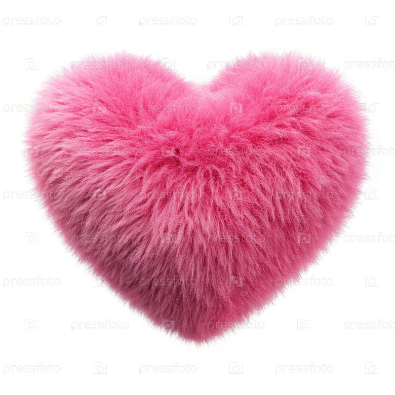 Розовое пушистое сердце на белом фоне для романтического украшения