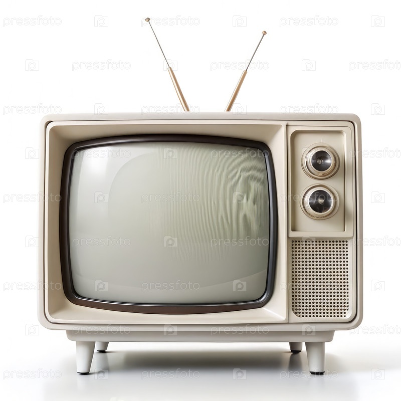 Классический белый телевизор в переднем видении с четко отображаемыми антеннами