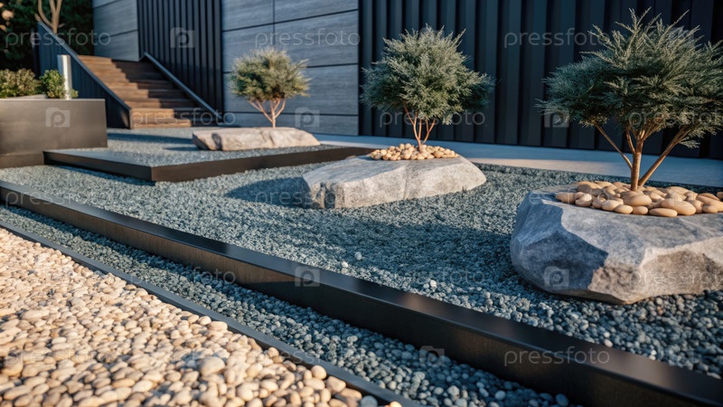 Мраморные чипы улучшают современный ландшафтный дизайн для современных садов