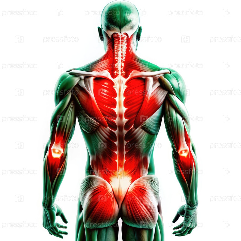 Мышечная анатомия, показывающая болевые точки на спине человеческой фигуры
