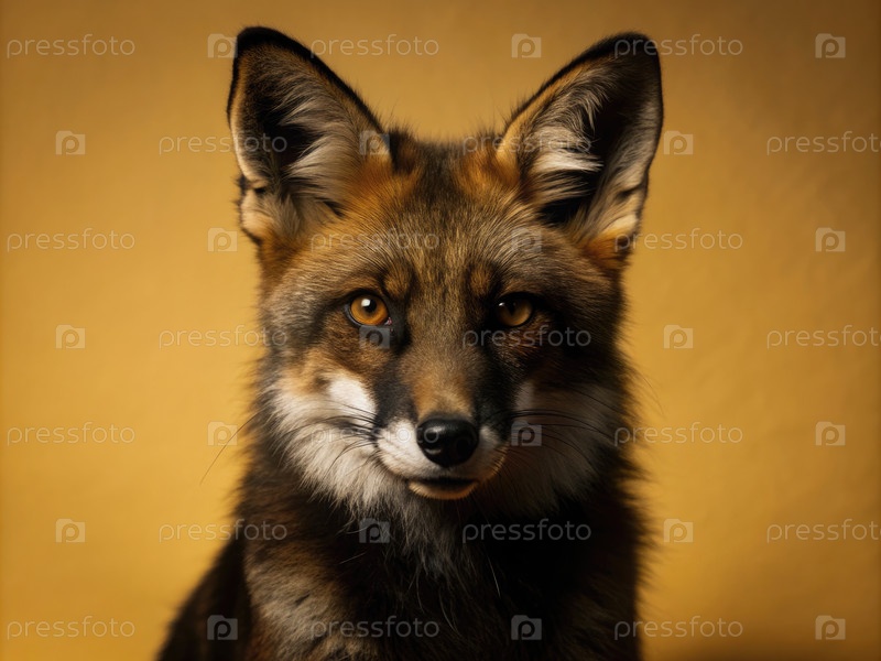 Портрет лисы с выразительными глазами на теплом фоне