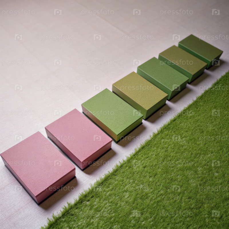 Инфографика временной линии, отображающая градиентные ящики на травянистой поверхности