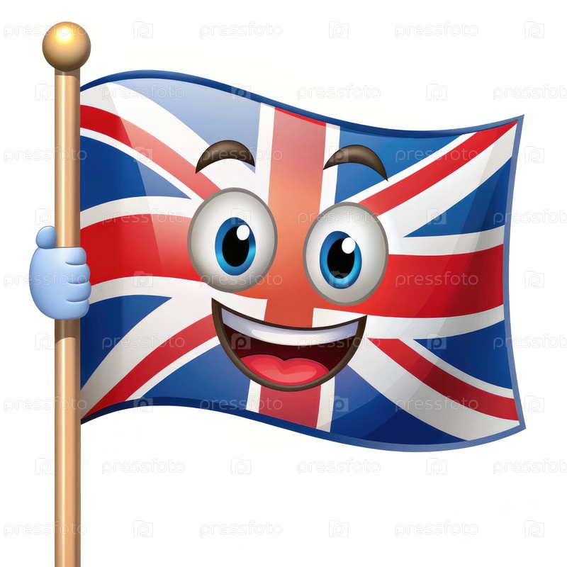 Веселый персонаж из мультфильма, весело держащий флаг Union Jack