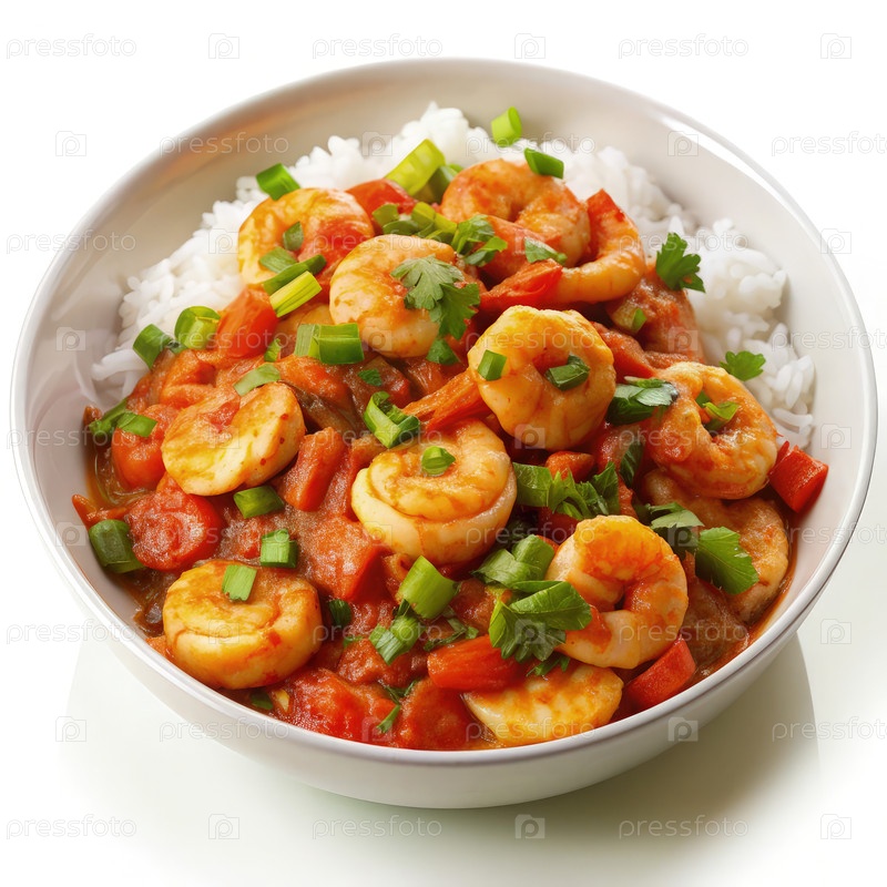 Креветочные креветки подают на рис в миске с яркими начинками