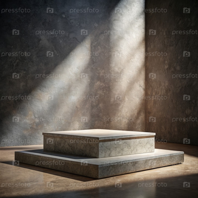 Каменный подиум, освещенный естественным светом в минималистической обстановке студии
