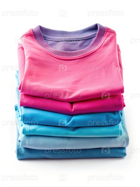 Куча розовых и синих футболки на стандартной шкале в яркой обстановке