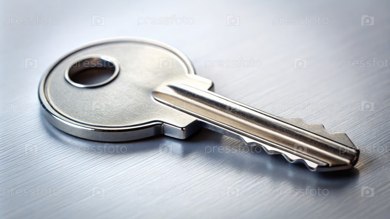 Современный металлический ключ, опирающийся на белый стол со стандартной шкалой поблизости