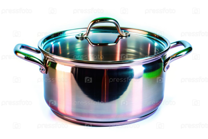 Горшок из нержавеющей стали, выделенный на белом фоне со стандартной шкалой