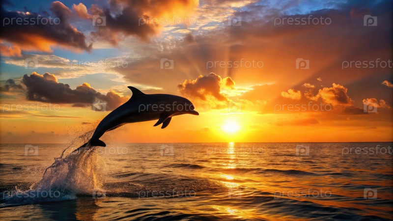 Дельфин грациозно прыгает из океана на закате