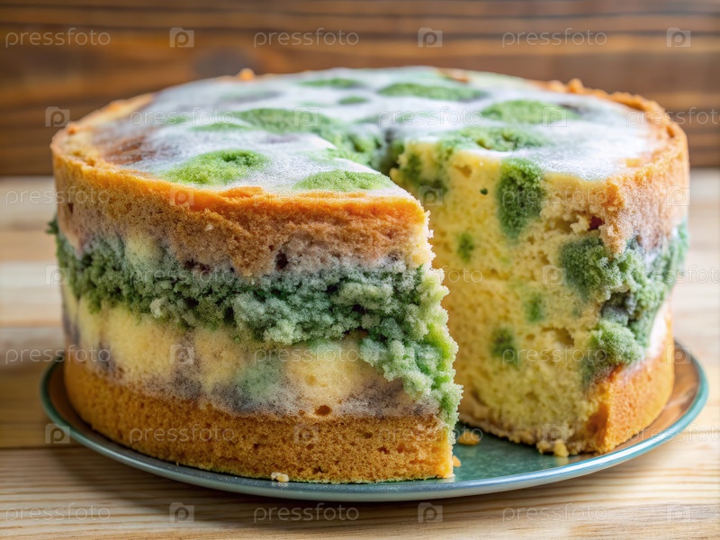 Плесенистый торт с зелеными и желтыми слоями, отображаемый на деревянном столе