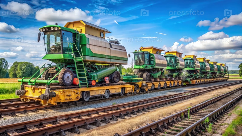 Демонтированные комбайны на железнодорожных путях в сельском ландшафте