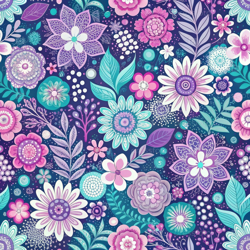 Красочные цветочные обои в фиолетовом, белом и розовом цветах для детских садов