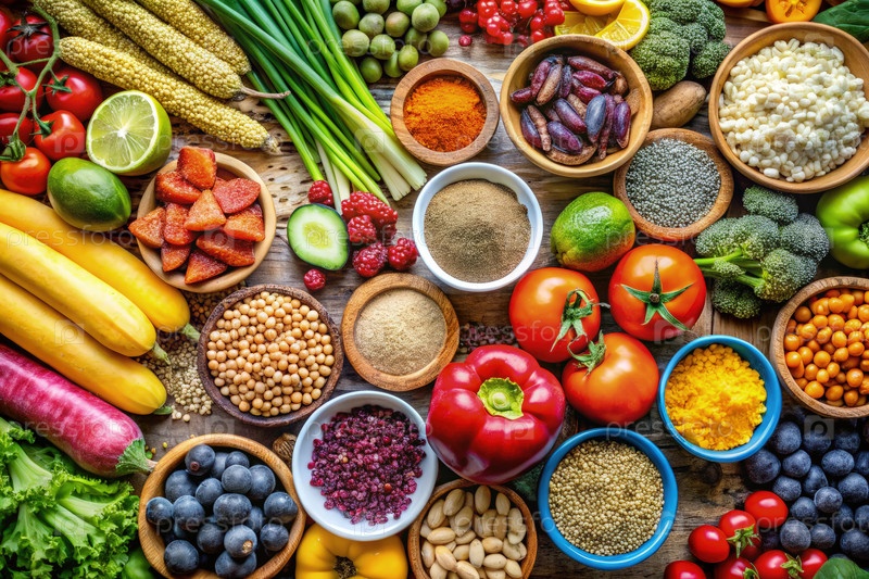 Красочное отображение фруктов, овощей и зерновых на стандартном масштабе