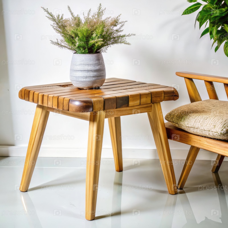 Стильная деревянная мебель с растением в современном интерьере