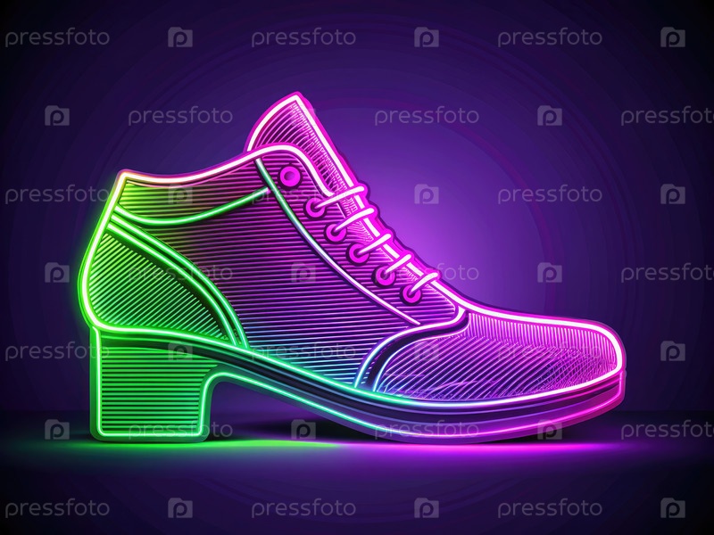 Неон-зеленый и фиолетовый линии искусства стильной обуви на темном фоне
