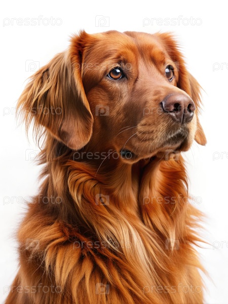 Большая рыжеволосая дворовая собака, которая любопытно смотрит в яркой помещенной обстановке