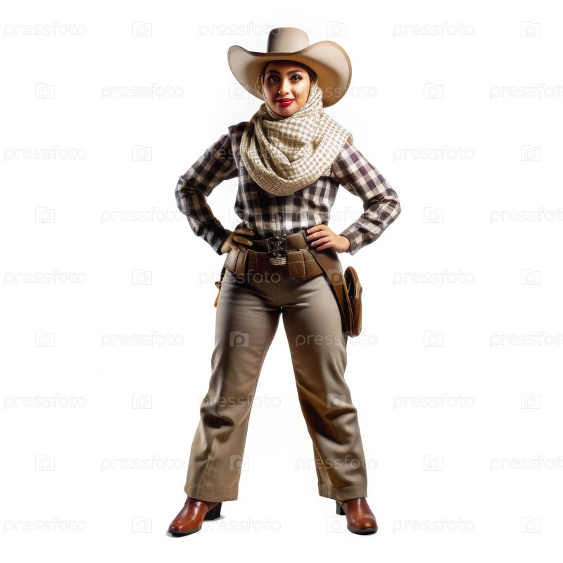 Красивая арабская женщина, одетая в ковбоя в стильном западном наряде