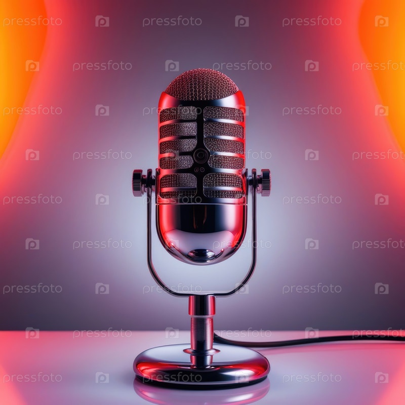 Гладкий серебряный микрофон с красочным фоном, готовый к динамической записи