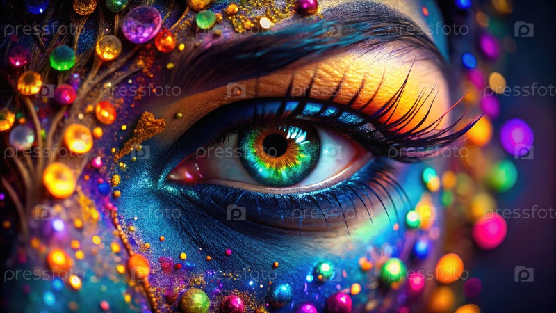 Красочные окрашенные глаза со сложными рисунками на творческом фестивале