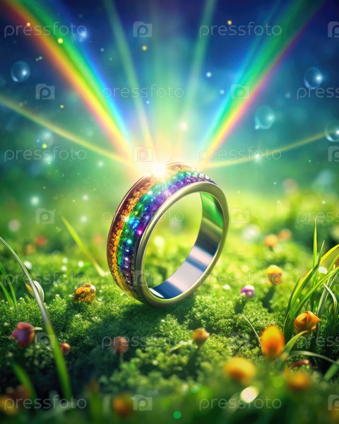 Живое кольцо, излучающее цвета в пышном травянистом уголке под мягким светом