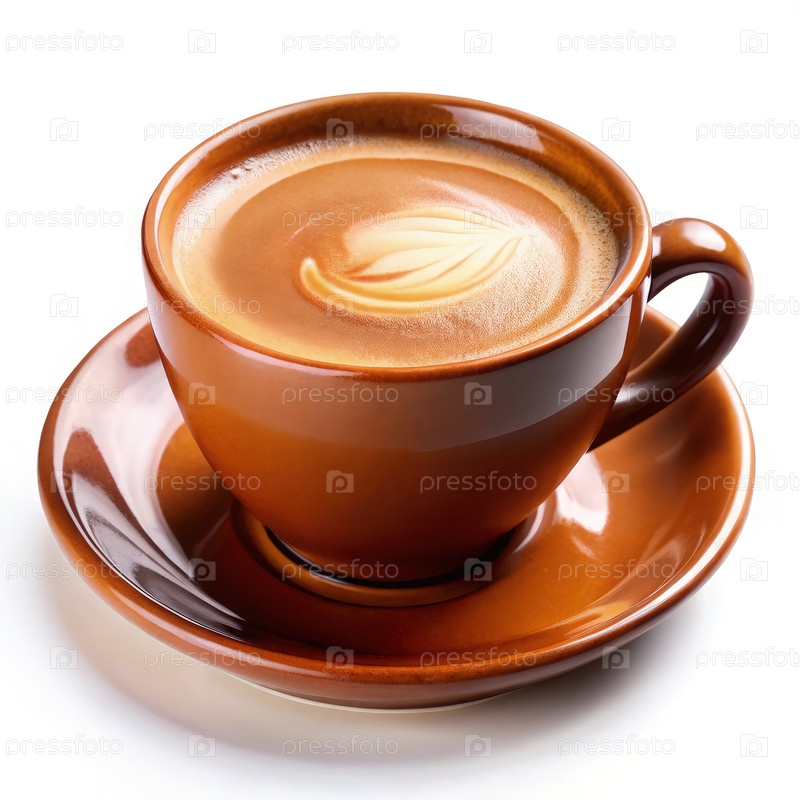 Красиво выполненная чашка для кофе с латте-арт на тарелке